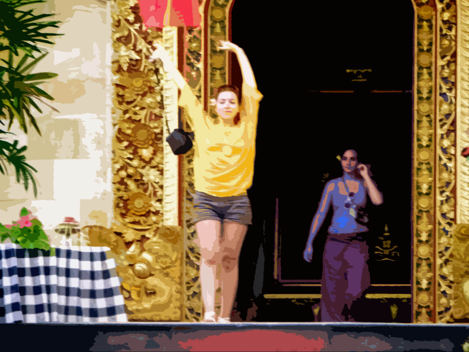Blanco was inspired by the Balinese dancers, therefore you will find multiple golden status in the form of dancers.