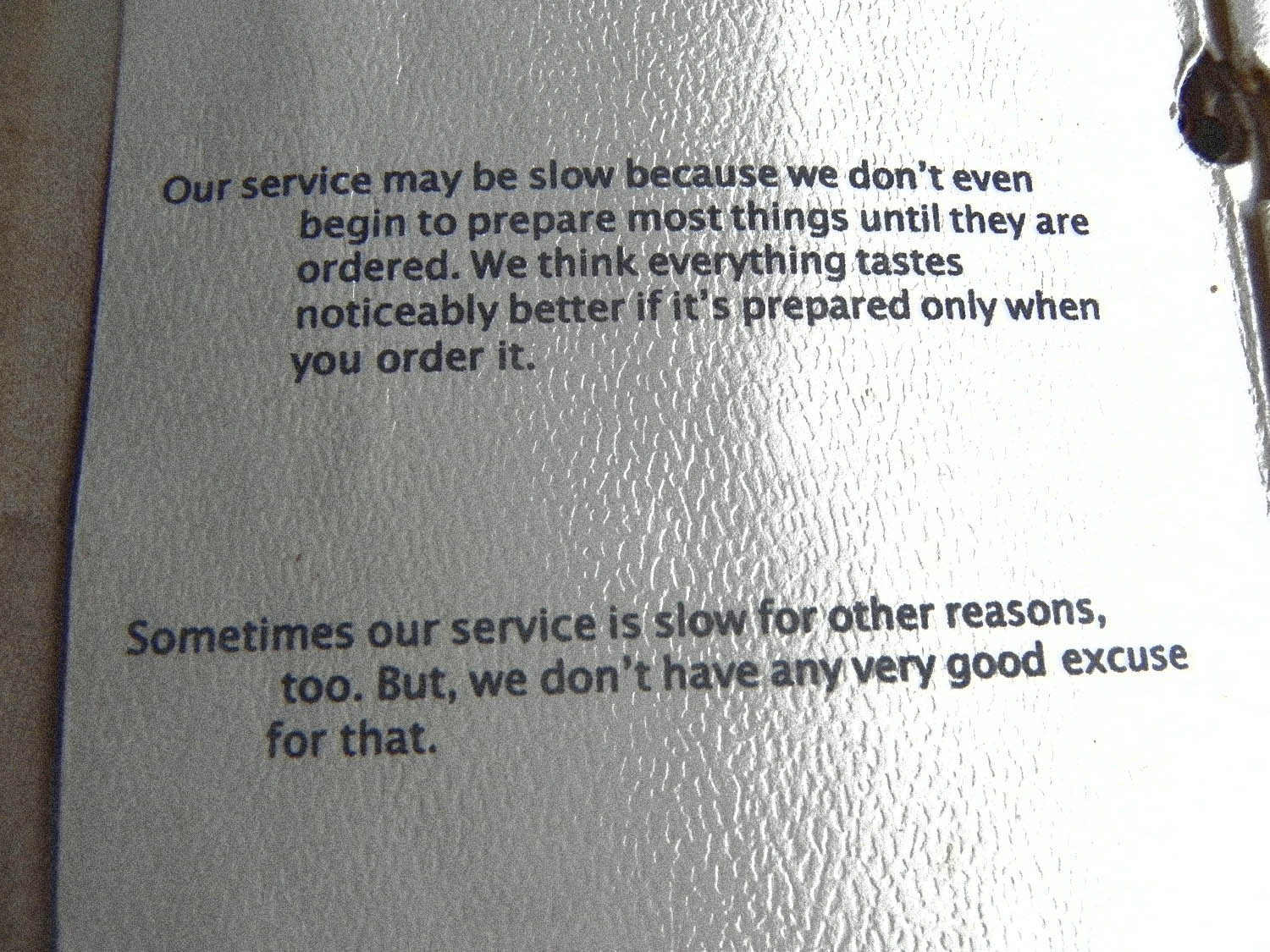 This is on the front page of the menu – Hilarious.