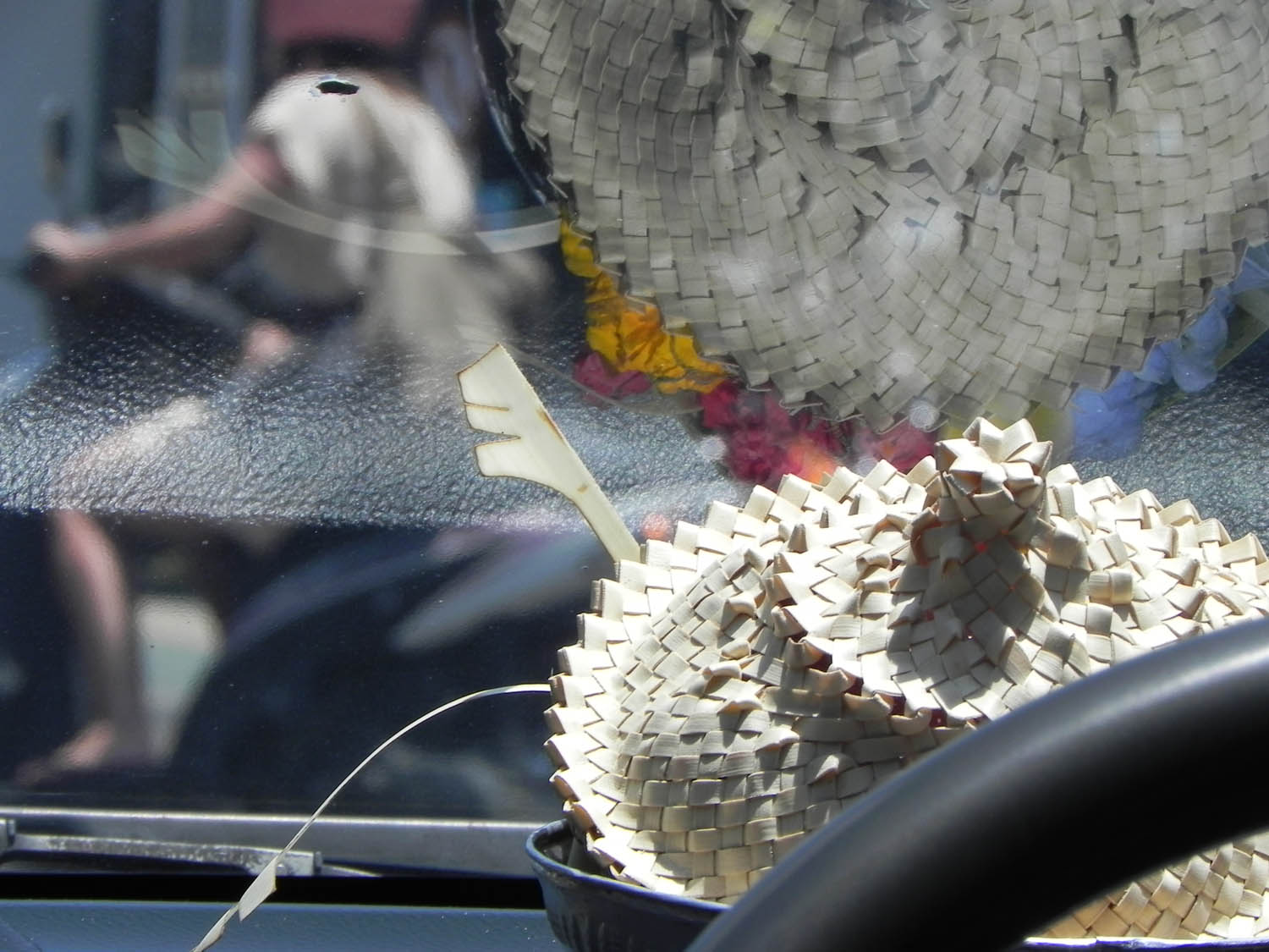 Blessings by adding rice to your forehead, a flower upon your ear and some “holly” water.