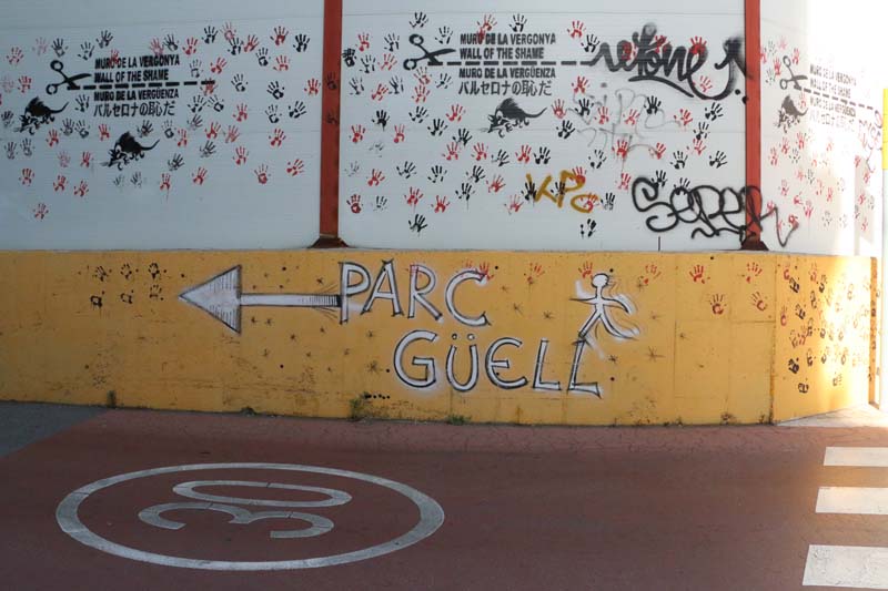 Sign to parc guell graffiti
