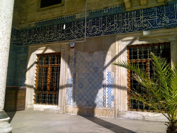 In the Blue Mosque there are beautiful saying all around. This one says: Religion revealed Beauty by the Prophet Muhammad (SAAW)